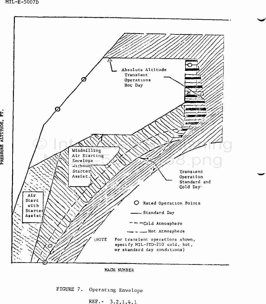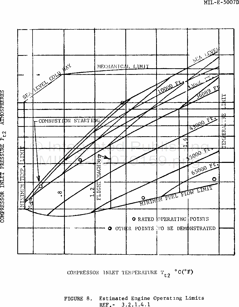 MIL-E-5007 Engine, Aircraft, Turbojet And Turbofan, General Specification ForThis specification establishes the performance, operating characteristics, design features, detailed interface configuration definitions, and installation envelopes of turbojet and turbofan engines.